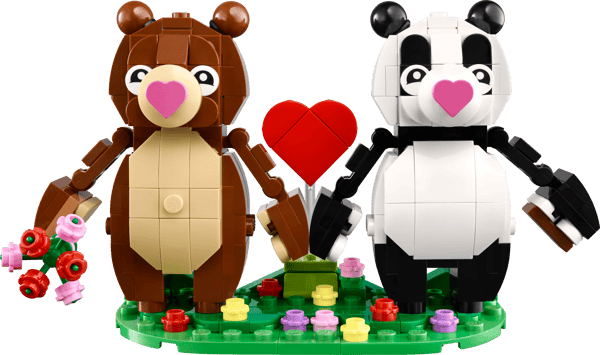 Celebrate Valentine’s Day with a buildable toy gift featuring 2 delightful, lovestruck bears with heart-shaped noses, flowers, a heart-shaped balloon and a box of chocolates. Love will be in the air wherever they are displayed! Standing over 9 cm (3 in.) tall, the 2 bears can be detached from the base and displayed independently. Their arms can be moved up and down and so can their paws. With 2 sets of building instructions, couples can build the love together. And, for added convenience, a digital version of the building instructions is available on the LEGO® Builder App.