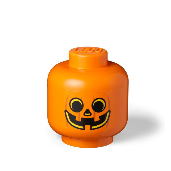 - Up-scaled, stackable storage head in durable polypropylene featuring LEGO® pumpkin minifigure facial features.