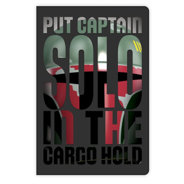 - Boba Fett-themed LEGO® Star Wars™ notebook – Softcover notebook with 192 pages of lined, ivory paper, featuring a ‘Put Captain Solo in the cargo hold’ graphic on the front cover