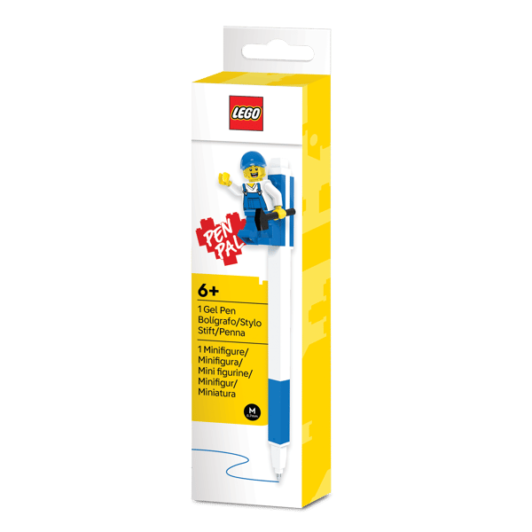 SpecificationsThis fun LEGO® Pen Pal Gel Pen with Minifigure features a medium-point tip filled with blue gel ink for a smooth and easy writing experience. The minifigure is a construction worker with a blue helmet, overalls and hammer that can be attached to the pen using an embedded LEGO brick or removed to pose separately while writing or drawing. This pen is a great gift for kids and any LEGO fans ages 6 and up.