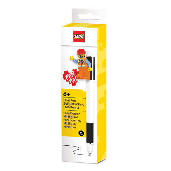 SpecificationsThis fun LEGO® Pen Pal Gel Pen with Minifigure features a medium-point tip filled with black gel ink for a smooth and easy writing experience. The minifigure is a construction worker with a red helmet and glasses that can be attached to the pen using an embedded LEGO brick or removed to pose separately while writing or drawing. This pen is a great gift for kids and any LEGO fans ages 6 and up.