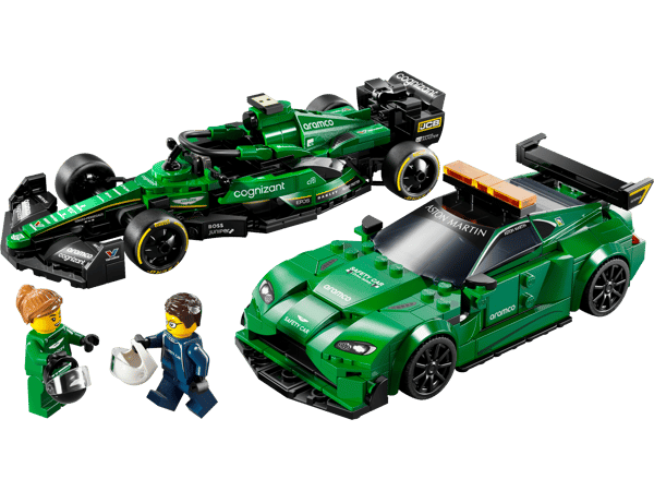 The Aston Martin Safety Car includes many authentic design details from the real-life version including the roof-mounted light bar, a lights control button sticker inside the cockpit and taillights, while the AMR23 toy race car has a safety halo, rear wing and sponsors’ logos. Each toy car also comes with a driver minifigure for kids to place behind the steering wheel and drive around the track.
