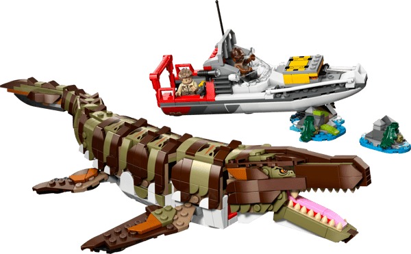 - Mosasaurus toy dinosaur set – Thrill Jurassic World Rebirth movie fans aged 9 and up with this Brick-Built Mosasaurus Boat Mission building kit, combining dinosaurs and action play