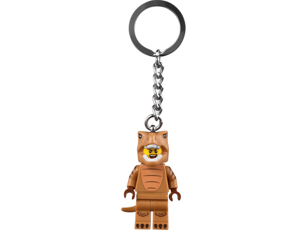 - T. rex Suit Guy Key Chain – LEGO® minifigure wearing an awesome T. rex suit attached to a durable metal ring and chain